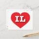 This postcard features a vibrant red heart containing the bold, white, upper case letters IL, the official abbreviation for the state of Illinois, the prairie state. The reverse side of the postcard is blank, awaiting your handwritten sentiments or customised text.