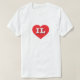 This t-shirt features a vibrant red heart containing the bold, white, upper case letters IL, the official abbreviation of Illinois, the prairie state.