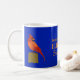 Blue and orange mug with Illinois state bird. Northern Cardinal.