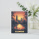 Illinois USA Art Vintage Illustration Travel Postcard
