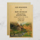 Rustic Vintage Illinois wedding invitation packed with tons of retro mid-century style. It features a rustic woody nature landscape with a wood cabin and water wheel mill, and a pretty stream or creek flowing by. It has green trees and some yellow leaves for an autumn or end of summer feel. This Illinois wedding invitation will be perfect for a country wedding or nature and camping wedding.