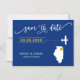 You chose a special place for your wedding. Now it's time to celebrate it with this keepsake save the date magnet card, featuring a silhouette map and a tiny plane headed to your destination. To move the heart to the place of your wedding, click personalise and then "customise further."
