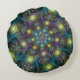 Illuminated Abstract Shiny Teal Purple Fractal Art Round Cushion