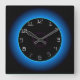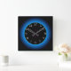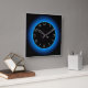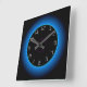 An Illuminated blue/aqua circle design with a black background.This artistic clock has white Luna numerals on the black centre. A special arty design with atmospheric character. Note> This is not a led product.