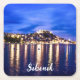 Illuminated harbor in Sibenik, Croatia Square Paper Coaster