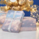 Illuminated pink fluffy clouds in a blue sky wrapping paper