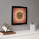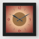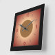 An atmospheric clock with border of black and illuminated yellow/ tan /red centre.