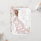 Floral bridal shower invitation features customisable bride to be in glitter wedding gown with choice of blonde, brown, auburn hair and several skin tones.
