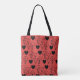 Illustrated Cats and Hearts Red Pattern Tote Bag