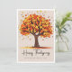 Send warm Thanksgiving wishes with this beautifully designed holiday card, featuring a vibrant display of autumnal tree leaves in rich fall colours. Perfect for capturing the essence of the season, this card combines the beauty of nature with a cosy, festive feel.