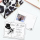 With a photo space on back, this black & white typography design features features a formal top hat & bridal rose bouquet illustration.