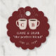 A pair of illustrated steaming mugs of rich dark coffee decorate this charming shower or wedding coffee, hot chocolate, and tea favour tag. Personalise all text including the his and hers monogram letters on the mugs for a truly one of a kind favour tag.