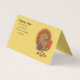 This fold over standing business card is a muted yellow with an illustration of a male turkey with a fanned tail with feathers in Autumn colours of browns and oranges. Customise all your information on the front, back, and inside with the templates.