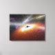 Illustration of a supermassive black hole at the core of a young, star-rich galaxy featured with accretion discs.