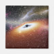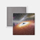 Illustration of a supermassive black hole at the core of a young, star-rich galaxy featured with accretion discs.