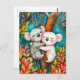 Illustration of koalas hugging in eucalyptus fores postcard