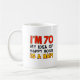 I'm 70 My Idea Of Happy Hour Is A Nap funny mug. A great mug for someone turning seventy. Do you know a 70 year old who loves to nap instead of party? A great 70th milestone birthday gag gift.