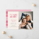 Celebrate your new little one and their proud big sister with this single photo birth announcement. It features the words "I'm a big sister" in shades of pink along with space for all of the info about your new arrival on the left and space for a single photo on the right. The back has a colour coordinating pink stripe pattern.