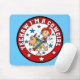 Yeehaw I'm a Cowgirl mousepad, perfect for cowgirls of every age, colourful and so cute with the stick figure cowgirl riding a mechanical bull red, white, and blue design!