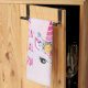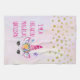 A kitchen towel with a funny saying: I'm a freakin' magical unicorn. Designed with a pink unicorn with a pretty floral crown and 2 gentle butterflies fluttering above her head. A pastel colour watercolor background. Faux gold confetti sprinkled along the top.