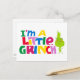 This vibrant and humorous graphic features the self-proclamation: "I'M A LITTLE GRINCH!" The text is rendered in massive, playful, multi-colored block letters that pop against the white background. Standing next to the text is a stylized, bright green cartoon of the Grinch, sporting a mischievous smirk and pointing proudly. This bold, colorful design is perfect for apparel, stationery, or decor for anyone who loves the holidays but needs a cheeky excuse for their occasional bad mood!