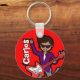 Rockstar keyring boy on Red. Add your name keychain this example reads Carlos or add your own name (4-6 letters max). Exclusive design by Sarah Trett.