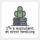 Show off your debugging resilience with this clever and minimalist programmer sticker! Featuring the iconic tech pun "I'm a succulent at error handling," this design is the perfect inside joke for software engineers, DevOps, sysadmins, and IT professionals.