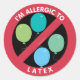I'm Allergic To Latex Allergy Symbol Kids Stickers. Red circle with line through it crossing out balloons. Text reads "I'm allergic to latex". Check out all our other allergy products. Contact for special requests. www.LilAllergyAdvocates.com
