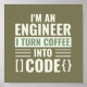 Are you an engineer who thrives on caffeine and coding? Then this t-shirt is perfect for you! Introducing our "I'm An Engineer I Turn Coffee Into Code" t-shirt, designed for those who love to power through their coding sessions with the help of a cup of joe. So why wait? Get your hands on our "I'm An Engineer I Turn Coffee Into Code" t-shirt and proudly display your love for engineering, coding, and coffee in style! Order now!