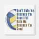 Volleyball Art Don’t Hate Me Square Magnet created by ITD Sports Centre feature our original artwork of half a yellow, white and blue volleyball on the left side with the words in blue and brown on the right, Don’t Hate Me Because I’m Beautiful, Hate Me Because I’m Good. Our fun sports accessories and gifts are perfect for volleyball lovers, volleyball players, volleyball stars, volleyball coaches, and sports lovers of all ages. It’s all fun and games at Imagine That Design Sports Centre.