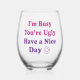 I'm Busy You're Ugly Have a Nice Day Stemless Wine Glass