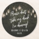 This modern thank you design complements the other pieces in this industrial-wedding-themed collection. The handwriting type-based graphic reads "Please don't take my drink. I'm dancing!" in bold, casual letters. Below, your names and date appear in a pretty, modern all-caps serif font. The old, cool-toned, dark brick wall background image is overlaid with vintage Edison lights. Please do not hesitate to reach out to me for special requests or for assistance with customisation.
