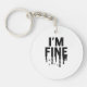 A powerful and ironic graphic design featuring the common phrase "I'M FINE" in a distressed, blocky typeface. The word "FINE" is shown melting or dripping, symbolising that the feeling is unstable, unraveling, or a lie used to mask pain, anxiety, or deep sadness. Perfect for mental health awareness, emotional honesty, and raw expression.