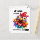 Send a chuckle with this delightful postcard showcasing a cute chicken illustration. The witty phrase "It's Fine, I'm fine, everything is FINE" will surely bring a smile to the recipient's face. Whether you're feeling overwhelmed or simply want to spread some joy, this card is a fun and cheerful choice.