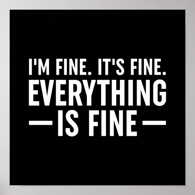 I'm Fine. It's Fine. Everything Is Fine. Me Black & White Quote Saying Funny Typography