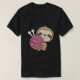 I give wanted to give this a 4 instead of a 5 because these Basic DARK T0shirts run unexpectedly SLIM or Narrow. Which is great if you do not have a potbelly, but I have a paunch. It isn't the shirt's fault that I've got a beer belly. The design and shirt itself is a quality cotton shirt. The color is more of a deep purple, but still a very pretty color. The Basic DARK T-shirts run a bit SLIMMER than the Basic Ts. The neck is a fraction narrower (or seems to be narrower) also. I'm a paunchy middle-aged woman and my neck is 12 inches (31cm) thick and the neckline fell about the same as in the photo of the man, and I had the desire to tug it a bit. So if you're a thick necked man or like loose shirts, be aware these are slimmer shirts. Once I get rid of my lockdown paunch it'll look great. The shirt washed well in cold water with no apparent bleeding. We don't have a dryer, so it hung dry. Did not shrink. Love the colors and the design. The design looks smaller on my shirt than it does on the model on-line. But still, it looks good on the shirt. The printing looks as it does on the model, just the size seems fractionally smaller. Washed garment in cold water, hung dry and design appeared unaffected.