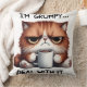 Cat holding a coffee mug with a look on his face and the text, "I'm Grumpy... Deal With It..." Perfect for that snarky pillow day!