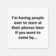 For the sarcasm lover in all of us. Check out this witty “I'm Having People Over Later to Stare at Their Phones If You Want to Come By” design on apparel, mugs, mousepads, buttons, and other unique gifts.
