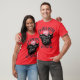 I give wanted to give this a 4 instead of a 5 because these Basic DARK T0shirts run unexpectedly SLIM or Narrow. Which is great if you do not have a potbelly, but I have a paunch. It isn't the shirt's fault that I've got a beer belly. The design and shirt itself is a quality cotton shirt. The color is more of a deep purple, but still a very pretty color. The Basic DARK T-shirts run a bit SLIMMER than the Basic Ts. The neck is a fraction narrower (or seems to be narrower) also. I'm a paunchy middle-aged woman and my neck is 12 inches (31cm) thick and the neckline fell about the same as in the photo of the man, and I had the desire to tug it a bit. So if you're a thick necked man or like loose shirts, be aware these are slimmer shirts. Once I get rid of my lockdown paunch it'll look great. The shirt washed well in cold water with no apparent bleeding. We don't have a dryer, so it hung dry. Did not shrink. Love the colors and the design. The design looks smaller on my shirt than it does on the model on-line. But still, it looks good on the shirt. The printing looks as it does on the model, just the size seems fractionally smaller. Washed garment in cold water, hung dry and design appeared unaffected.