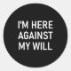 I'm Here Against My Will, Funny, Jokes, Sarcastic Classic Round Sticker