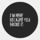 I'm Here Because You Broke It Funny Maintenance Wo Classic Round Sticker