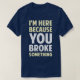 Im Here Because You Broke Something 1 .Great shirt for yourself, family, grandpa, grandma, grandmother, grandfather, mum, dad, sister, brother, uncle, aunt, men, women or anyone