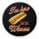 Retro style colourful "I'm here for the Wieners" text design with colourful tasty hot dog decoration