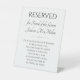 This elegant wedding memorial pedestal sign, with it's touching poem "I'm in Heaven for your wedding", is a beautiful way to remember and pay tribute to a friend of the groom on the wedding day. Place this on the chair he or she would have sat in.