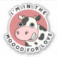 I'm In The Moood For Love Funny Cow Pun features a cute cow smiling and in the mood for love. Perfect pun gift for family and friends who love cute cow puns.