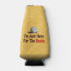This bottle holder features a cartoon drawing of a simple rock and says 'I'm Just Here For The Rocks." The true motivation of a geologist! On the back is a spot for your name and short message in white lettering. The background is a bunch of tiny geology rock hammers!