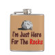 This flask, which features a cartoon drawing of a simple rock, reads 'I'm Just Here For The Rocks." The motivation of geologists!