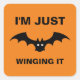 I'm Just Winging It Funny Halloween Bat Pun Family Square Sticker