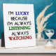 I am lucky, because I'm always listening, always watching. Original positive thinking message.