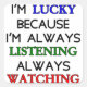 I am lucky, because I'm always listening, always watching. Original positive thinking message.